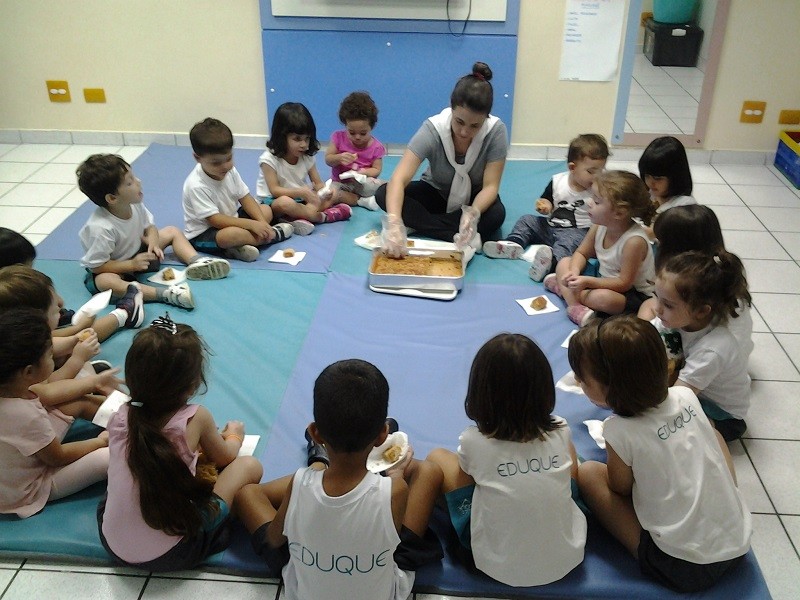 A cada semana é feita uma culinária e, depois de pronta, as crianças escolhem um espaço diferente para saboreá-la, como um piquenique no parque, na casa da árvore, no solário, no teatro e até mesmo na sala de aula, na companhia da turma do Integral 4 e 5.